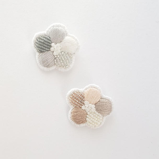 色 グレー 2色の刺繍糸と2色のビーズで制作