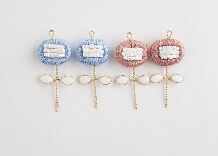 二つ葉ビーズと刺繍のイヤリング(ピアス)