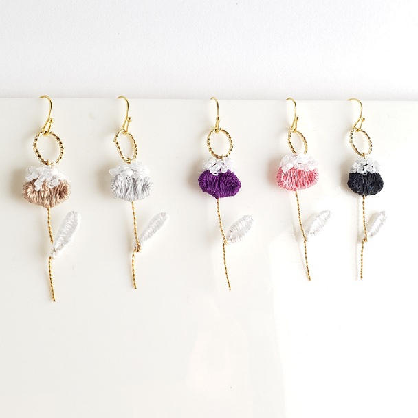 【Creema SPRINGS限定価格】小花のビーズと刺繍のイヤリング(ピアス)