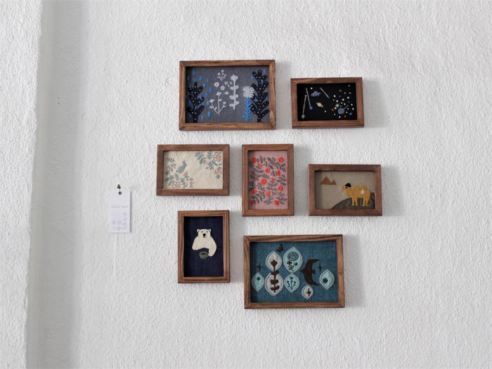 - 10X15㎝のはがきサイズの刺繍絵が入った額縁3つのご提供です。
