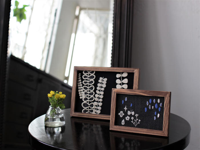- はがきサイズ〔10X15㎝〕の刺繡絵1つとA5サイズ〔15X21㎝〕の刺繍絵1つのご提供です。