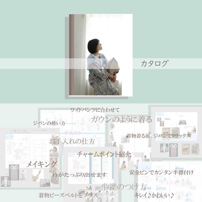いつのころからか襦袢は下着と位置付けされ、ある時からどんどん地味になってしまいました。でも本当はちらっと見えることが前提の、世界でも類のないアイテムなんです。新しい襦袢ジパンは着物からチラッと見えた時の印象を考え、素敵なインドのハンドブロックプリントで作りました。着物を脱いだ後もちょっとリラックスする時もカワイイ、そんな贅沢な襦袢がジパンです。うれしいことに半襟付けの面倒さも解消、広く襟を出せる工夫や衣文もきちっと抜ける機能も備えています。新しい襦袢をぜひみなさん応援してください。