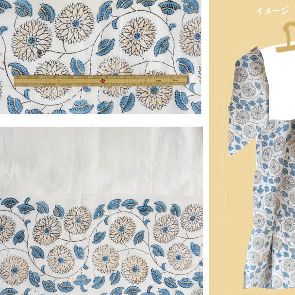 スカート部分とお袖にはインドのハンドブロックプリントを使っています。