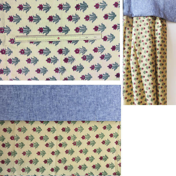 スカート部分とお袖にはインドのハンドブロックプリントを使っています。