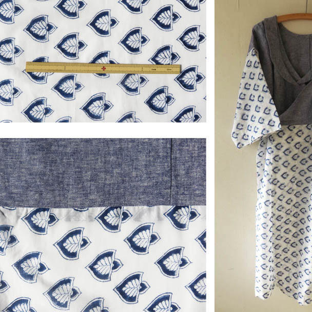 スカート部分とお袖にはインドのハンドブロックプリントを使っています。