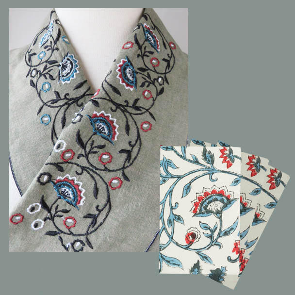 特製・vol.2 ハンドグロックプリントと同じ柄で作った刺繍半襟とポストカード3枚セット