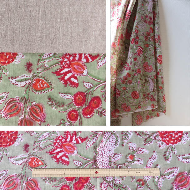 スカート部分とお袖にはインドのハンドブロックプリントを使っています。