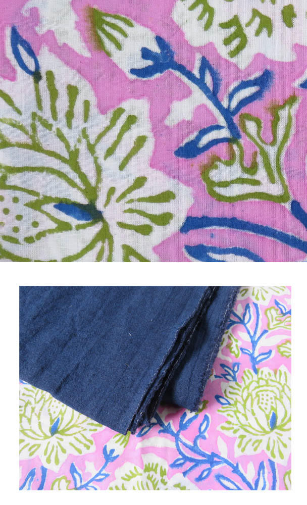 スカート部分とお袖にはインドのハンドブロックプリントを使っています。