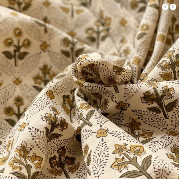 スカート部分とお袖にはインドのハンドブロックプリントを使っています。