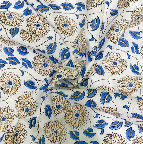 スカート部分とお袖にはインドのハンドブロックプリントを使っています。