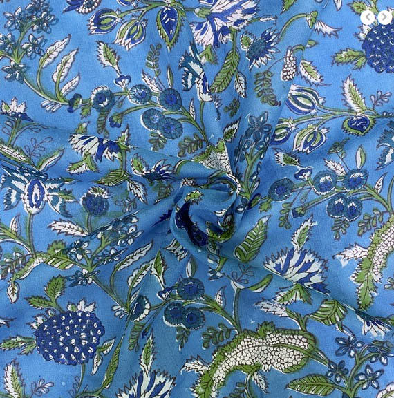 スカート部分とお袖にはインドのハンドブロックプリントを使っています。
