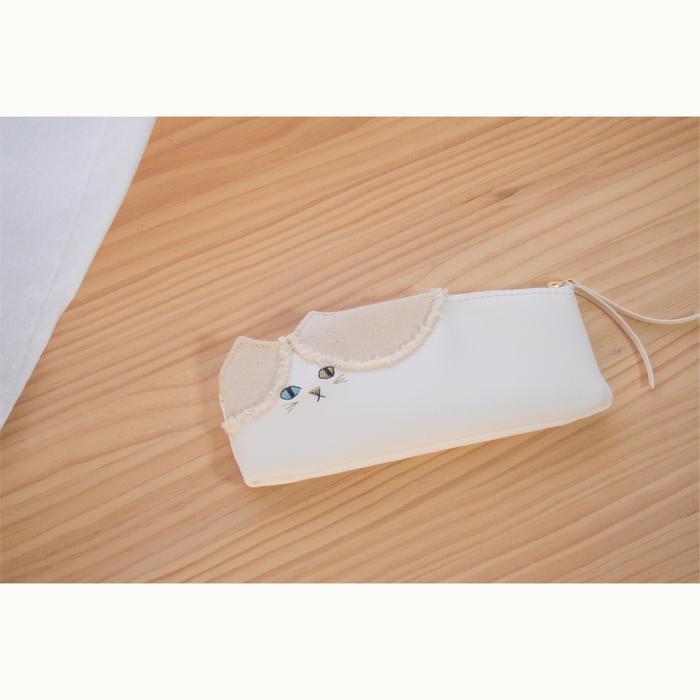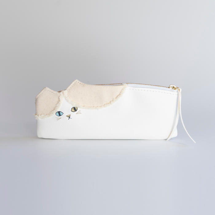 白いハチワレ猫のペンケース「ハンサムアイ」