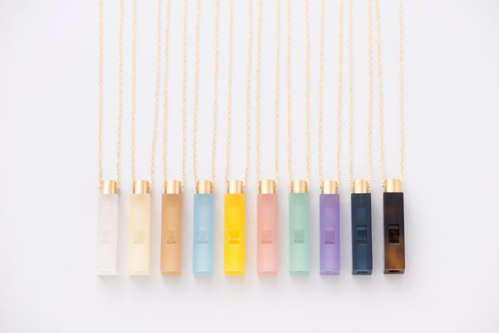 必要だとわかってはいても、なかなか持ち歩くことのできない防災用の笛。でももしアクセサリー感覚で身につけられるものがあったら、万が一の時により多くの命を助けることができるのでは…。めがねの素材から生まれた、身につける人に寄り添う、お守りのような笛をつくっています。