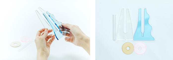 デザインにおいては、素材の魅力を引き出すことを大切にしています。アクリルの透明感や木の質感を最大限に引き出し、お互いを生かすためのデザインが重要だと考えています。二つの素材を同時に使うことで単独の素材ではわからなかった素材の魅力が引き出されます。