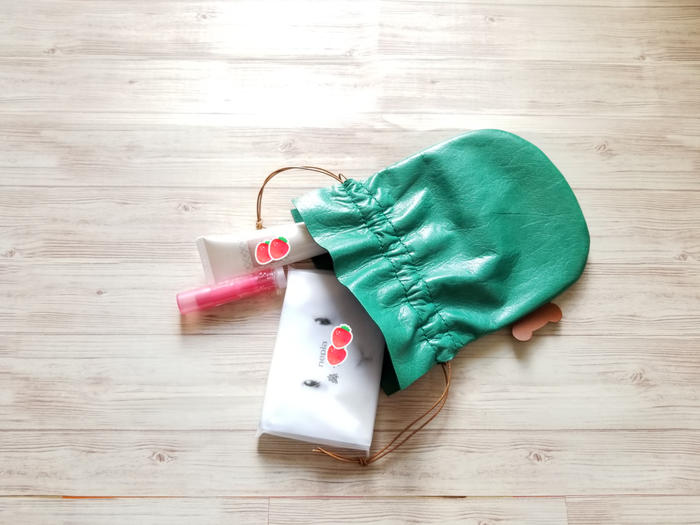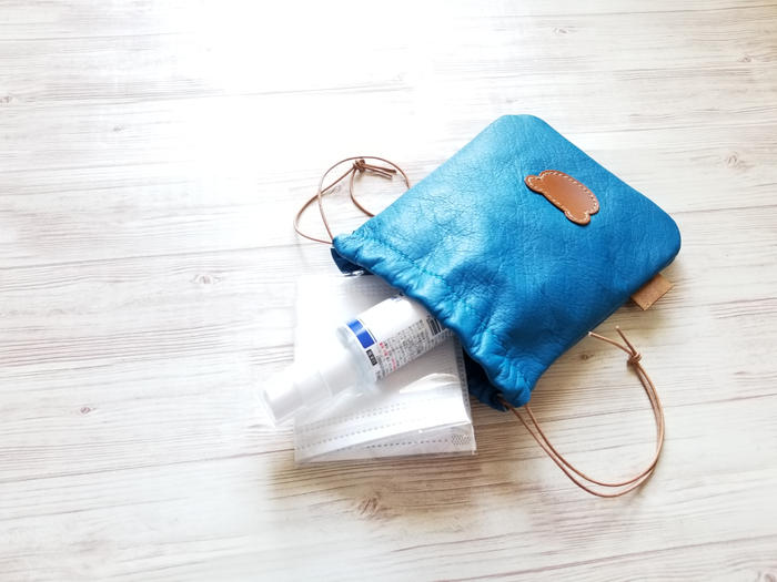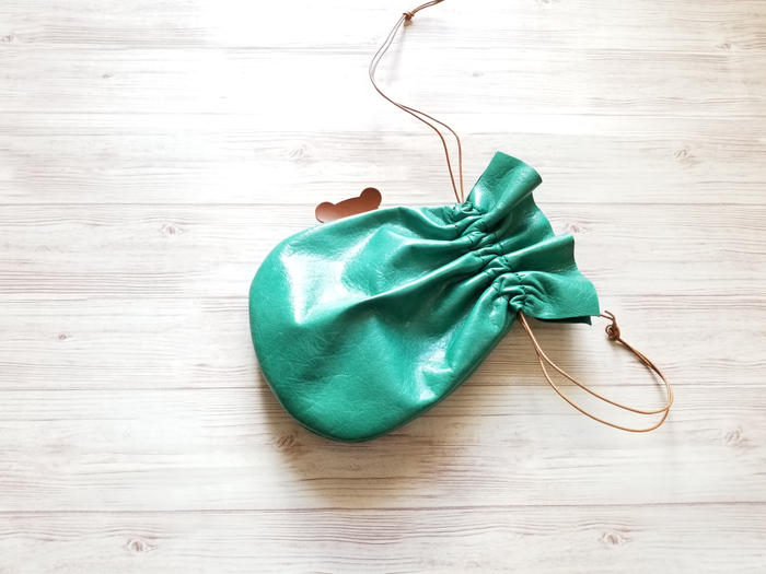 - 革製のミニ巾着。