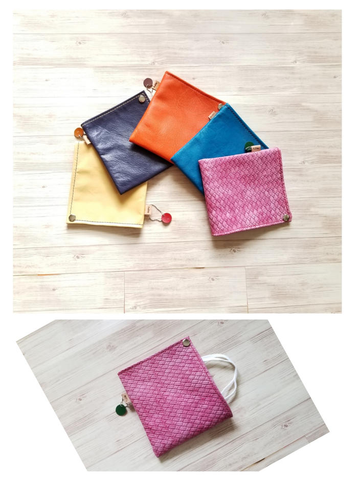 色:ピンク - やわらかいレザーで作っているので、かさばらず手軽に収納できます。