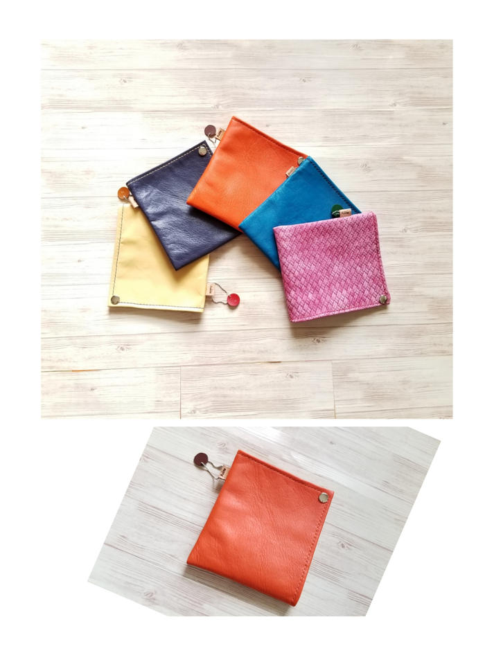 色:オレンジ - やわらかいレザーで作っているので、かさばらず手軽にマスクを収納できます。