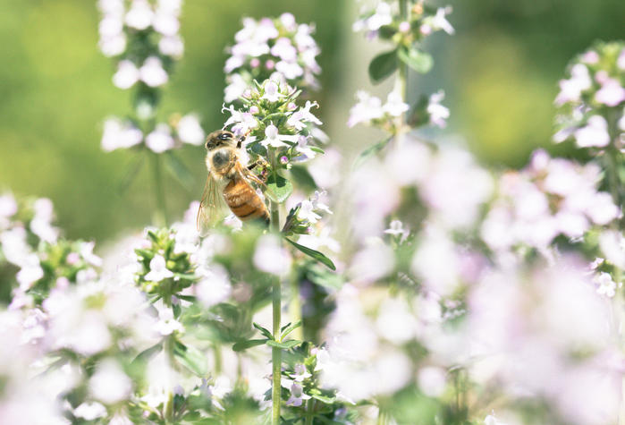 - ミツバチは花から花へ、ハチミツを集めときに、植物の受粉を手伝ってくれています。これらのうち、70%はミツバチのおかげで受粉がされて緑が育っているといわれています。