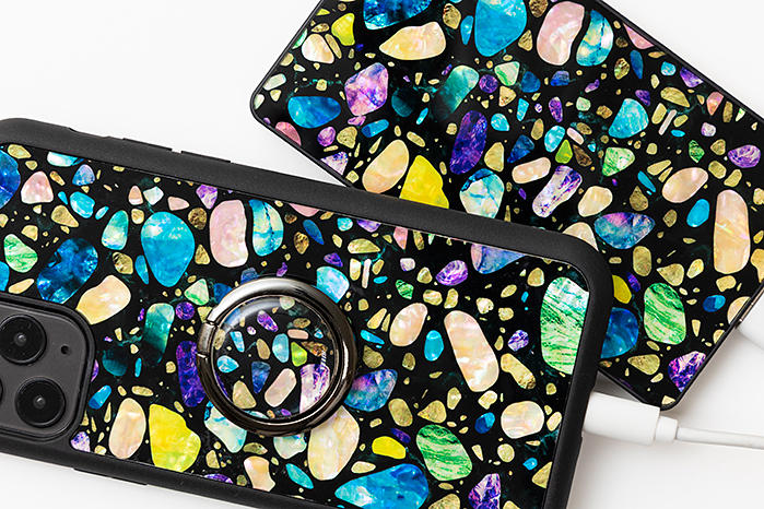 - あなたのスマホアクセサリーを螺鈿アートでキラキラに。
