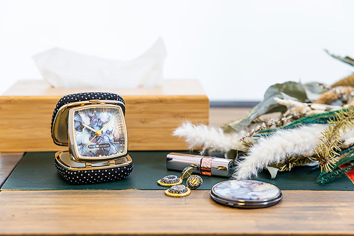 - 本プロジェクトでは、アートクロック以外に、螺鈿アートで人気なスマホケースやヘアゴム等のリターンもご用意しております。