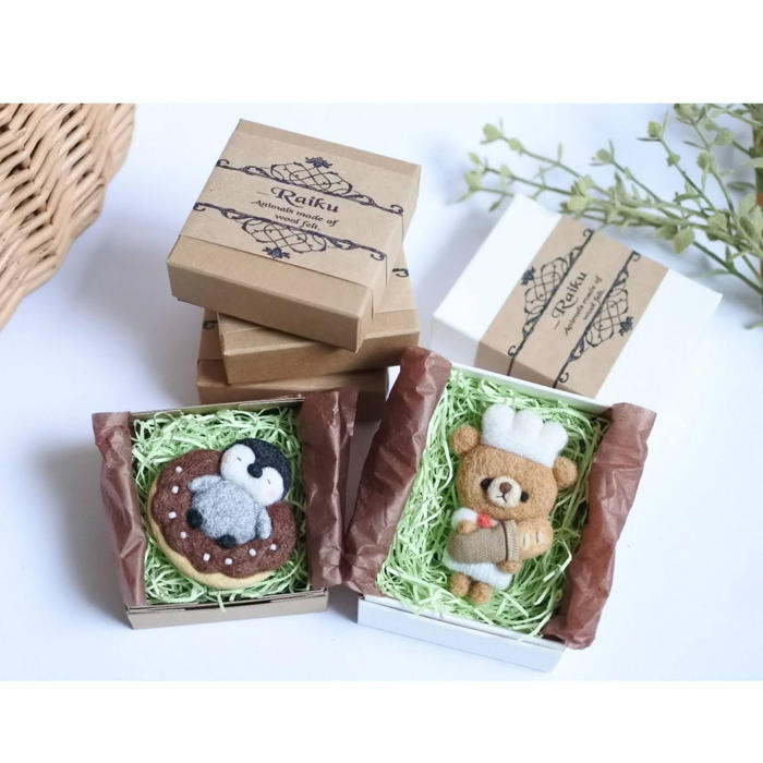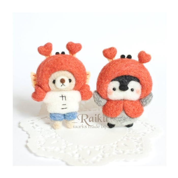 カニになりきったくまさんと、ぺんぎんのブローチです。