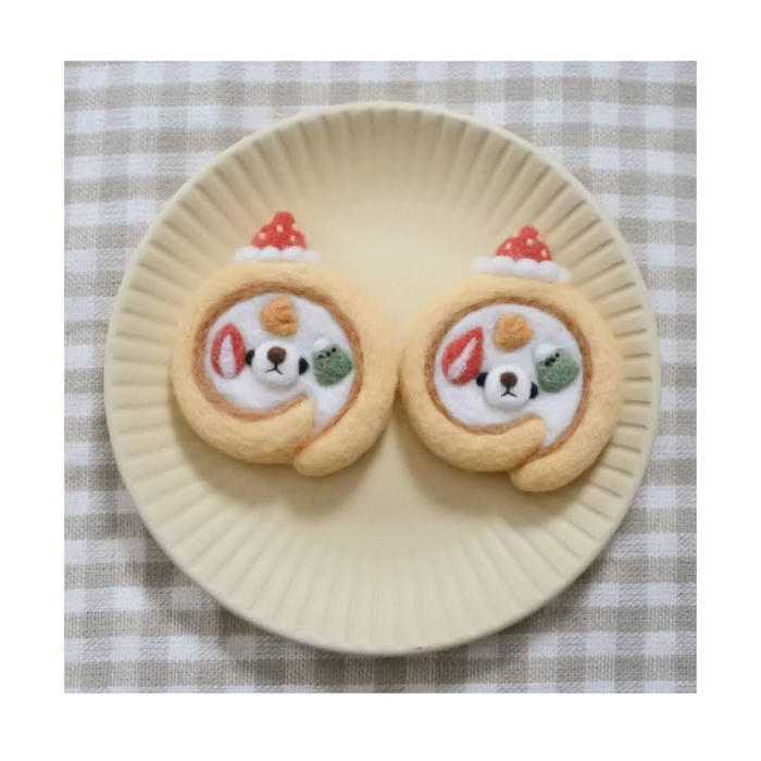 甘いフルーツたっぷりなロールケーキに入ったくまさん
