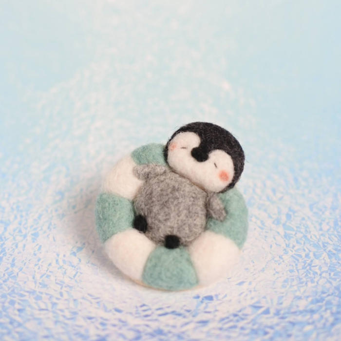 爽やかなミント色のうきわに乗ってプカプカ 気持ち良さそうにほっこりしている