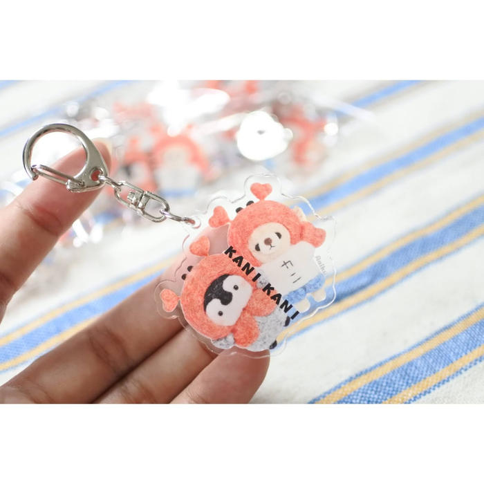 - メイン作品のカニくまとカニころっぺをもっと身近に付けてほしくて、初のアクリルキーホルダーが出来ました!!