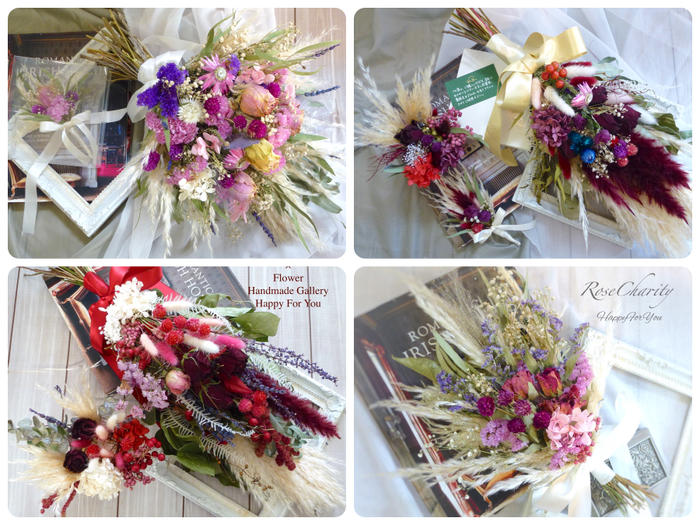 3.ドライフラワーのくすみ色の良さを発揮した、ブーケやアレンジなどに使いたいと思います。