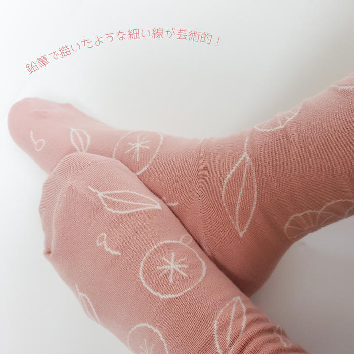 細い糸で細かいデザインを編み込んだハイゲージソックスです