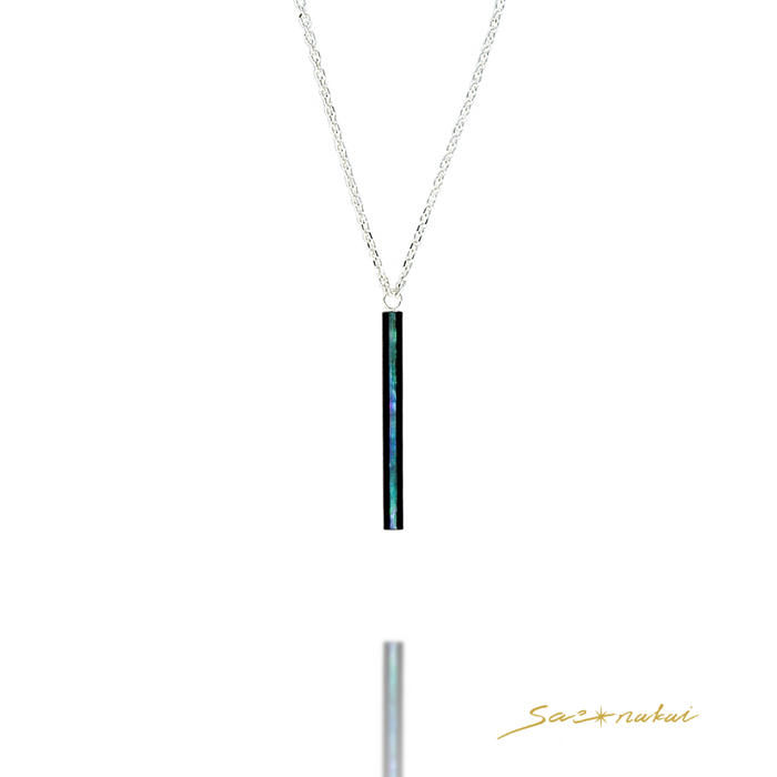 - ⼤きな⻘⾙が星のようにより⼀層の輝きを放ち、漆の艶と⾦属が味わい深く変化していきます。⽇本の伝統的な加飾技法である螺鈿を施し、すべて⼀点もののネックレスになります。