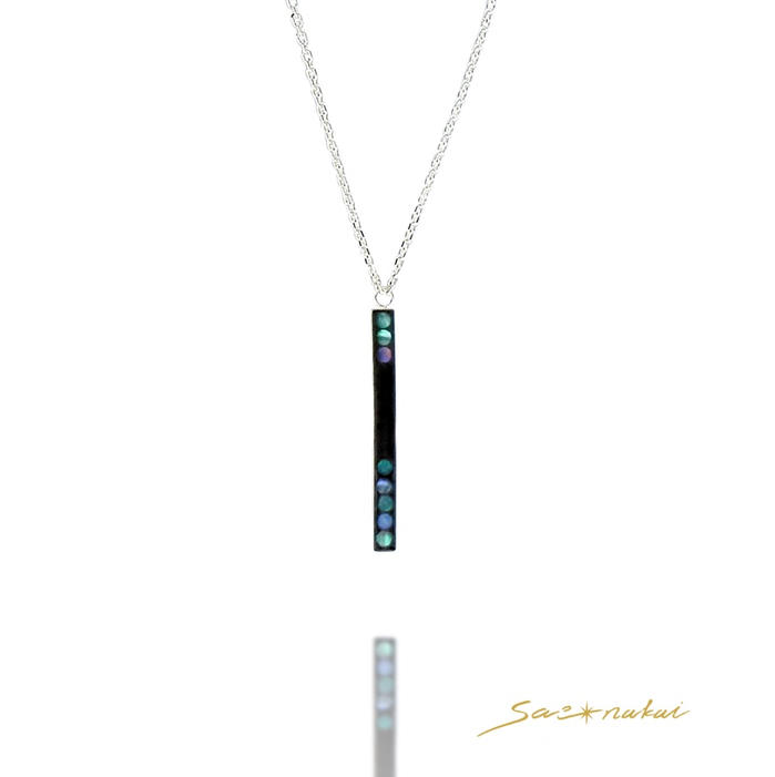 仕様:漆、青貝、トップ 2.6~2.8mm×34~35mm、ネックレス全長 約45cm(全長約40cmへ調整可能アジャスター付)