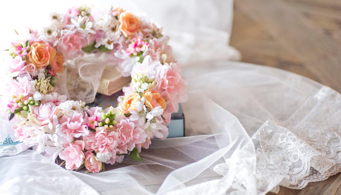 生花を加工しているプリザーブドフラワーの花束を使用しています。