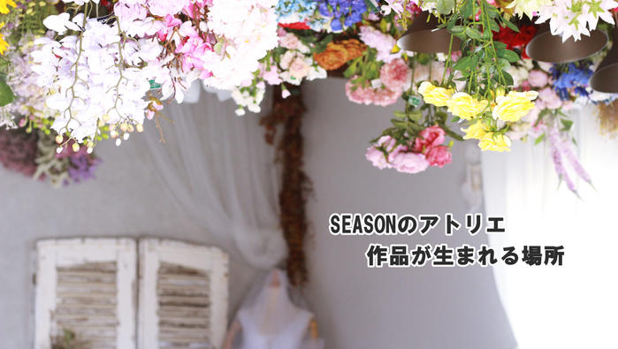 SEASONのアトリエには、沢山のアーティフィシャルフラワーを飾っています。