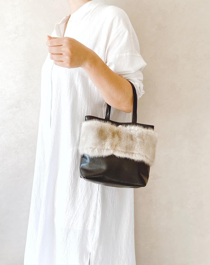 本革ブラックと合わせたサファイアミンク ミニトートです