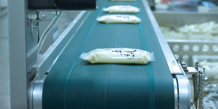 重量、温度、濃度、パッケージの瑕疵にいたるまで、すべてをチェックし、基準に満たないものはすべて廃棄する徹底ぶりです。また、豆乳に気泡が混じっていないかも入念に、生産管理責任者によって目視にて行われます。豆乳の気泡は空気であり、製品の安全性になんら問題はありませんが、わずかな気泡が混じることにより、豆乳が酸化する恐れがあり、少しの風味も落とさないよう厳密に管理しているのです。そうやって丁寧に選別されたものだけがベルトコンベアにて冷却水槽へと運ばれるのです。 -
