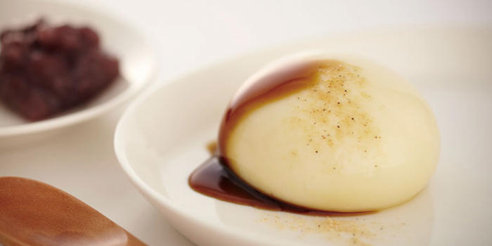 浅田さんも靖一郎豆乳を最初に認めたひとり。「はじめて靖一郎豆乳を飲んだときに驚いたのは、大豆のおいしさ、香り、栄養、それぞれどれひとつ欠けることなく三位一体となっていること。素材がいいので、スイーツに使うならできるだけシンプルなものがいいと思いました。そしてできあがったのが、靖一郎豆乳をそのままプリンにした『大美五豆(オミゴト)』。ヘルシーで口どけが良いとお客さまにも好評です」。 -