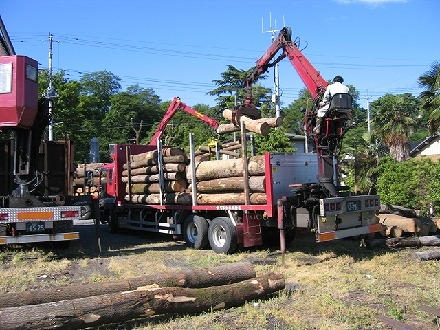 - それらの地域から専用のトラックで埼玉県の当店の材木置き場に運搬します。