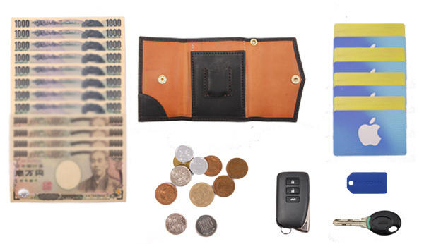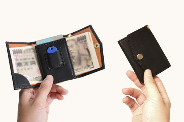 お札の大きさやカードもできる限り多く収納できるように、コインも入れることができるようにしたいと試行錯誤の結果ようやくたどりついたカタチです。 -