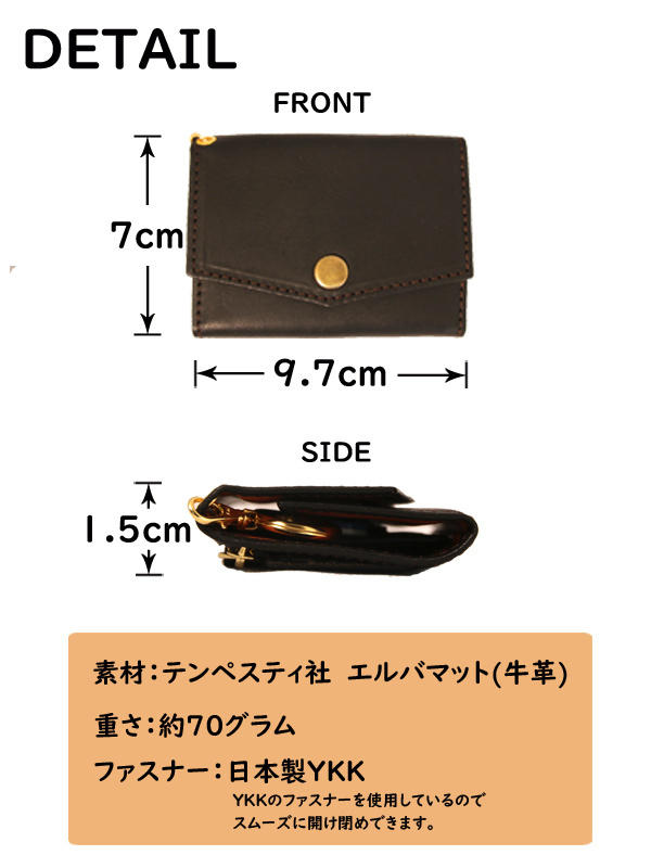 - 背面にはマチ付きの小銭入れがあるので取り出しやすい設計にしています。
