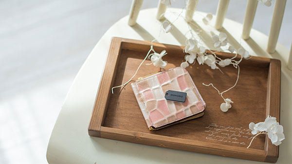 エナメル加工されたレザーとなりますので傷がつきにくく、新進工房の数あるレザーの中で、女性に一番人気のある革です。 -