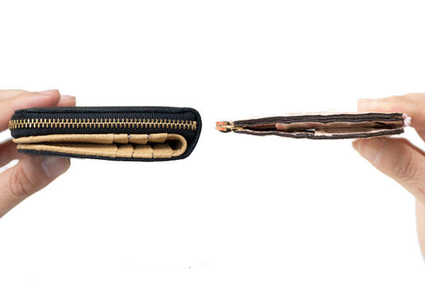 一般的な二つ折り財布に比べて薄くなるように設計しました。