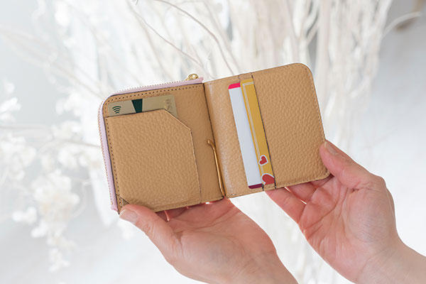 不必要なパーツを減らすことで薄いのに大容量のお財布を実現することができました。 -