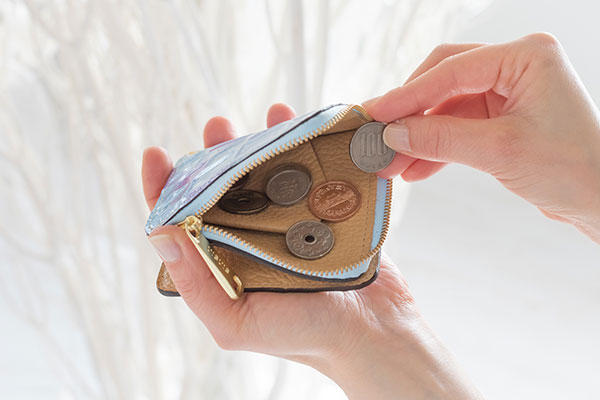 - マネークリップタイプのお財布は小銭入れのないものが多いのですが、使いやすいL字ファスナーの小銭入れスペースを作ったので小銭もたくさん入ります。