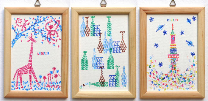 - 様々なモチーフを描きました。三点セットでお買い得です(笑)。