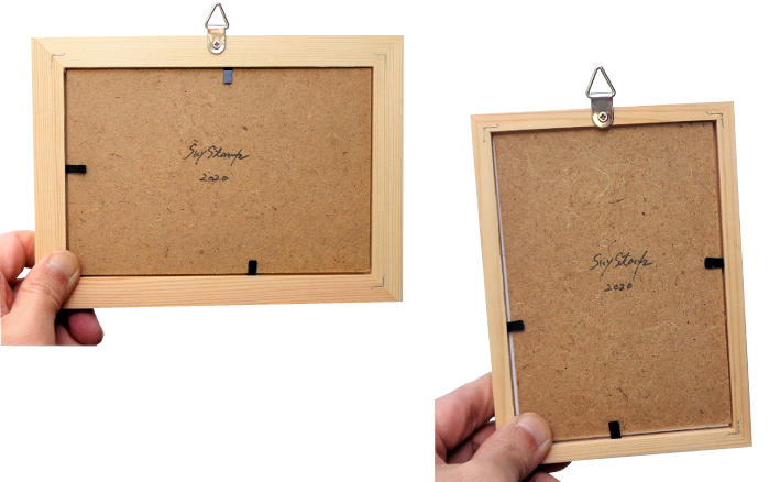 市販木製写真額入り。 - イッテンモノ「ハガキサイズノサクヒン」サンテンセット