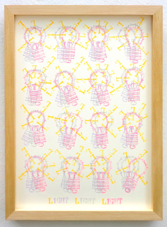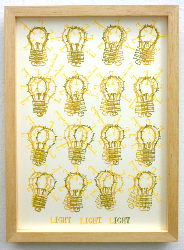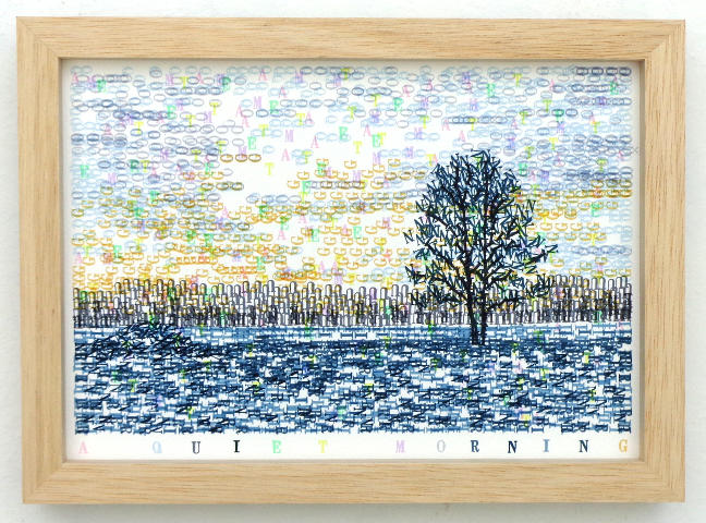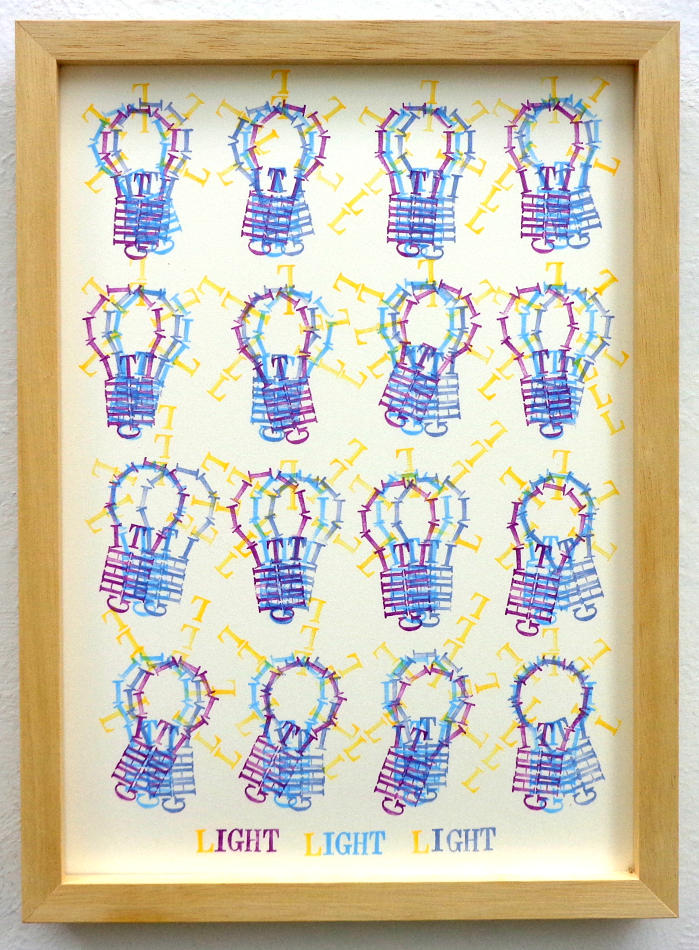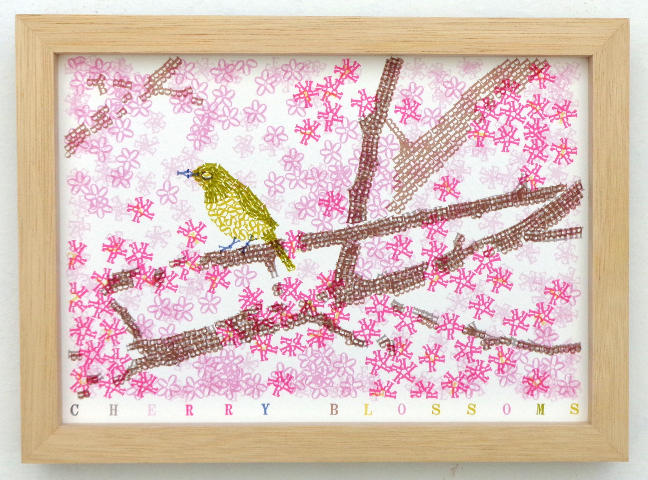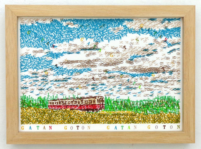 全てスタンプで描いています。A5(210x148mm)の水彩紙、市販木製額入り。 - イッテンモノ「マメデンキュウ ノ サクヒン」