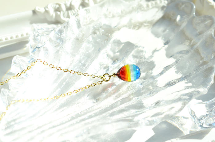 太陽光があたるとアクセサリーを置いた場所がレインボーに光を放ちます。