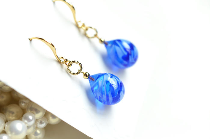 ■サイズ ・ガラス玉の大きさ 約W7mm,H10mm ・フックトップから 約34mm ■素材 ・日本製ガラス ・フック部分 K16GP or 本ロジウム 表面メッキ加工 ・他、真鍮メッキ加工 ■金具の種類 選択できます ・フックピアス ・スタッドピアス ・ネジバネ式イヤリング・樹脂オメガタイプイヤリング