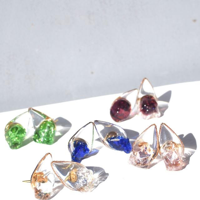 - 沖縄県内工房の琉球ガラスのカレット(カケラ)を使用し、ひと粒ひと粒シンプルなデザインながらもパッと目を引くアクセサリーを作っています。